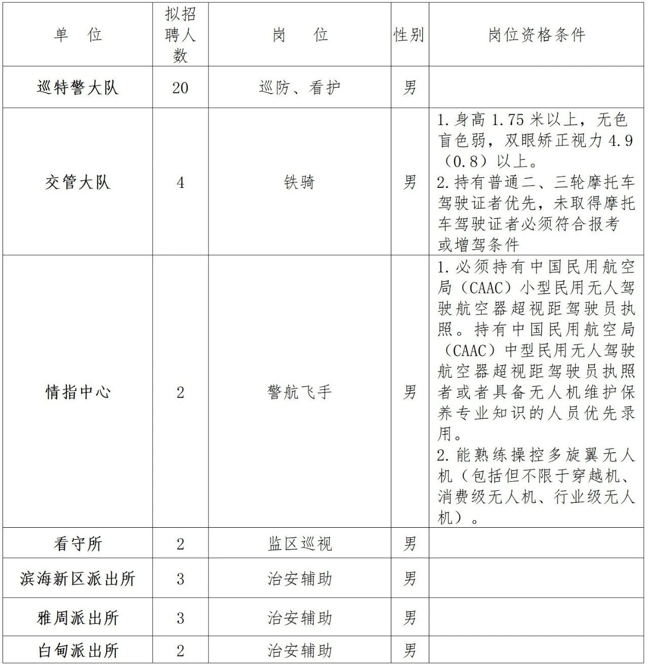 2、岗位基本要求:具备大专以上学历,年龄18周岁至35周岁,身高在 1.65米以上。退役军人优先,学历可放宽到中专或高中。