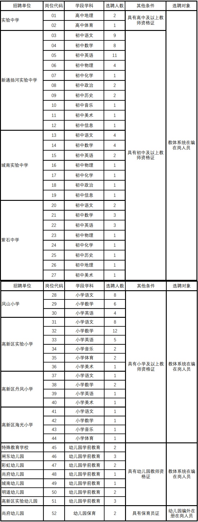 2.应聘人员所学专业或职称须与报考岗位一致(幼儿园保育岗位除外)。